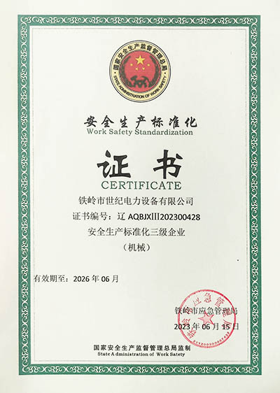 鐵嶺市世紀電力設備有限公司是集科研開發、生產制造、用戶服務于一體的國家高新技術企業,始建于1999年,位于鐵嶺經濟開發區,占地面積5萬余平方米,建筑面積2萬余平方米。主要從事國家電網配套戶外高低壓隔離開關、電力電纜、變壓器成套裝置、高低壓開關柜、箱式變電站、絕緣子等產品的研發、生產和銷售。公司現有國家發明專利6項、實用新型專利9項,公司通過了ISO9001國際質量管理體系認證、ISO14001環境管理體系認證和ISO 45001職業健康安全體系認證。